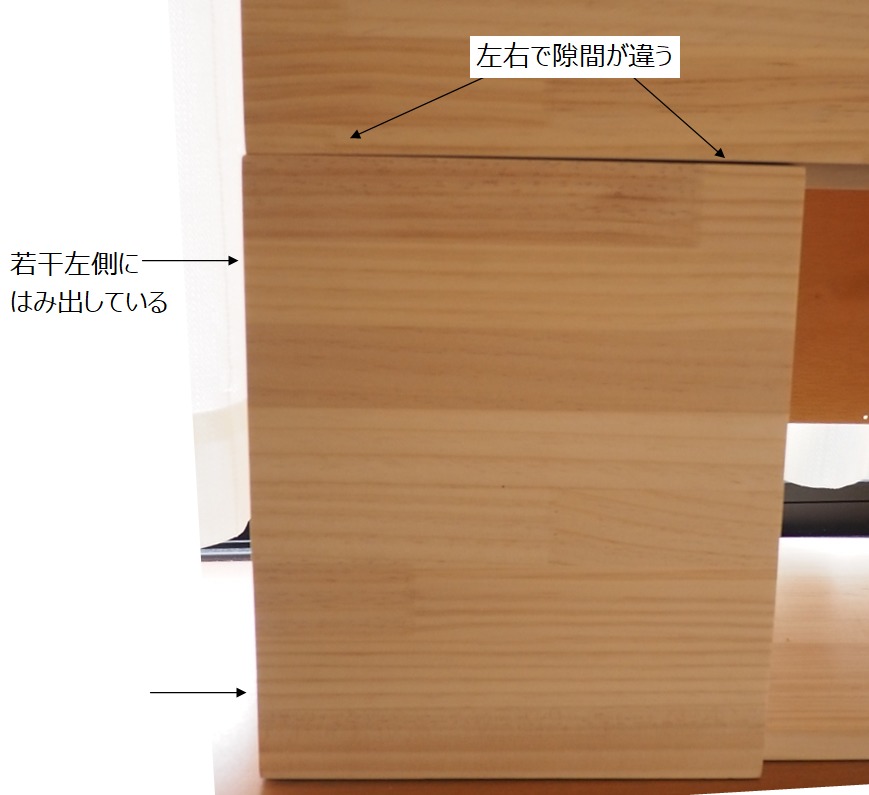 さて、扉を取り付けましたが、次の写真のように隙間が均一になっていません。