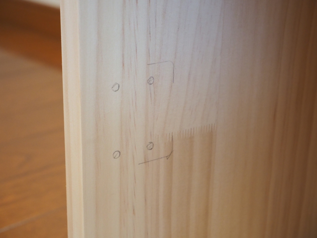 今回スライド蝶番を設置するのは左右合わせて以下の4か所です。