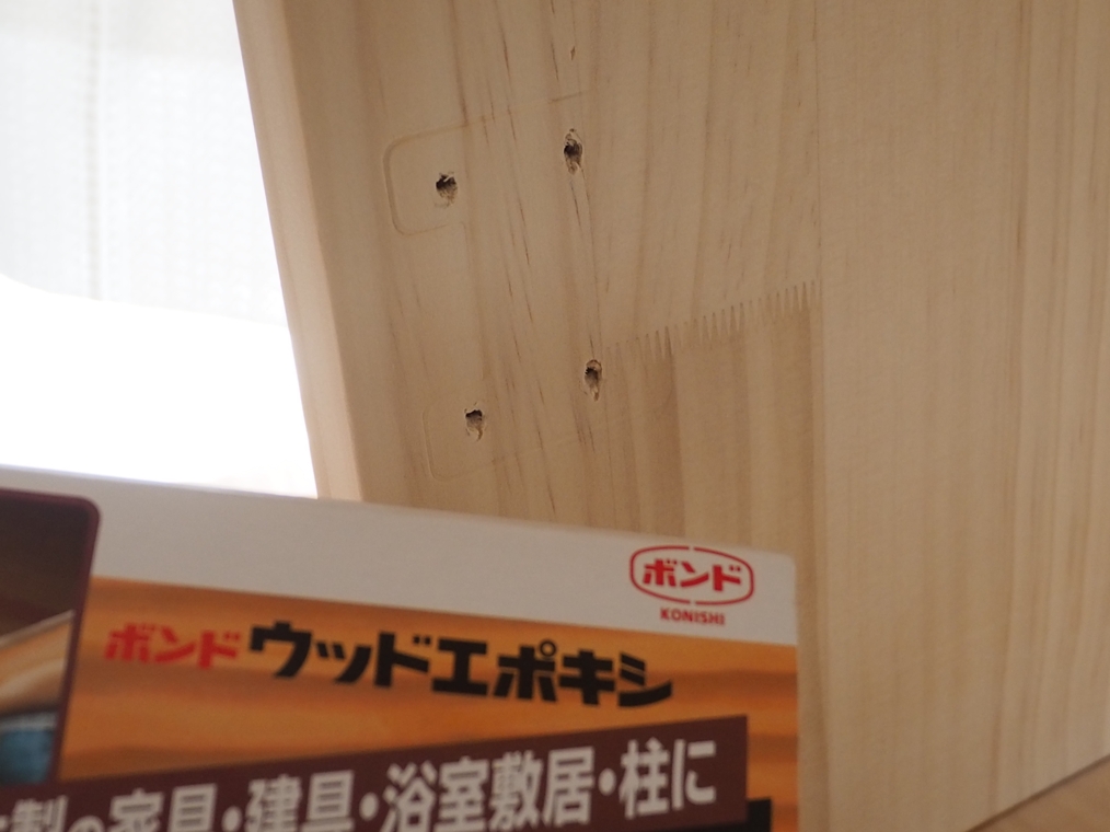 ここで、やはり間違って開けてしまったねじ用下穴に関してはパテで埋めることにしました。